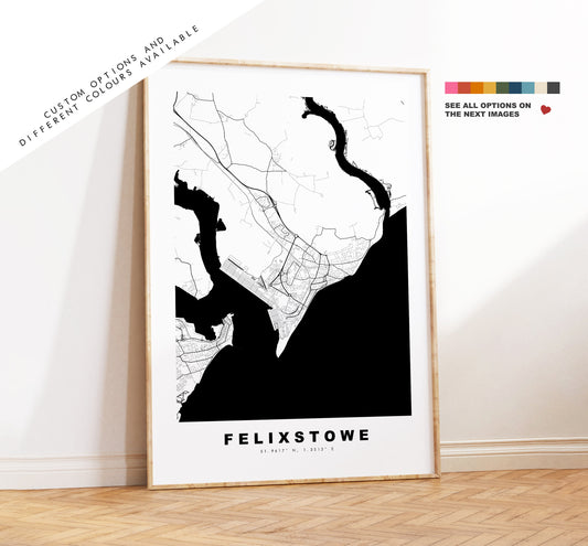 Felixstowe Map Print - Minimalist City Map Poster - Map Wall Art - UK - Felixstowe Print - Felixstowe Poster - Different Colours Available
