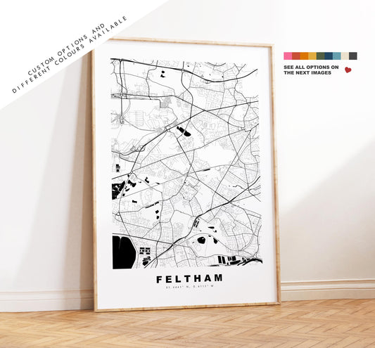 Feltham Map Print - Minimalist City Map Poster - Map Art - UK - Feltham Print - Feltham, London - Different Colours Available
