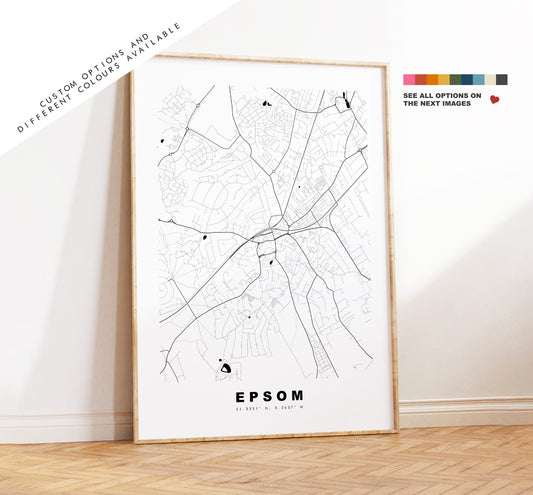 Epsom Map Print - Minimalist City Map Poster - Map Art - London, UK - Epsom Print - Epsom Poster - Different Colours Available