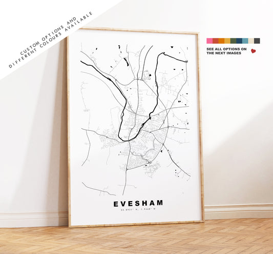 Evesham Map Print - Minimalist City Map Poster - Map Wall Art - UK - Evesham Print - Evesham Poster - Different Colours Available