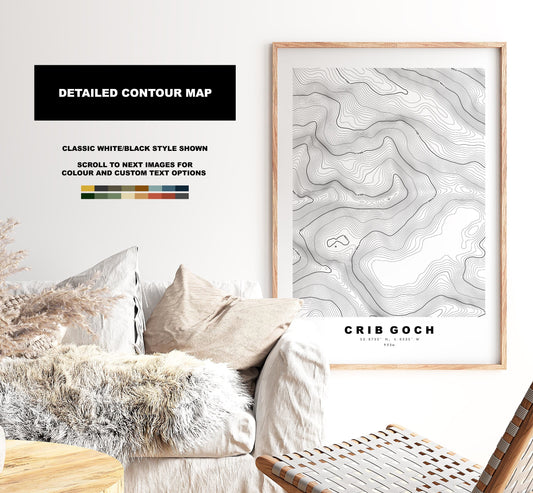 Garnedd Ugain Print - Contour Map - Garnedd Ugain Poster - Wales - Topographic Map - Print - Poster - Wall Art - Welsh 3000s - Topography