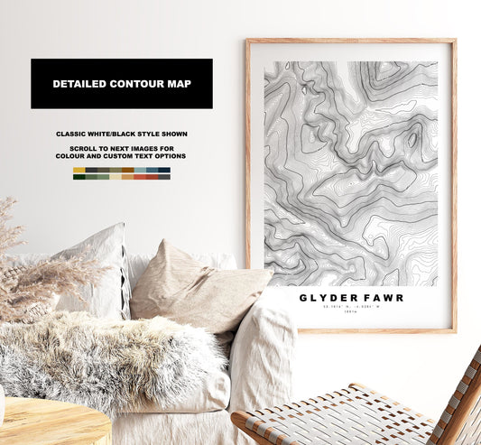 Glyder Fawr Print - Contour Map - Snowdonia - Wales - Topographic Map - Print - Poster - Wall Art - Glyder Fawr Poster - Relief Map
