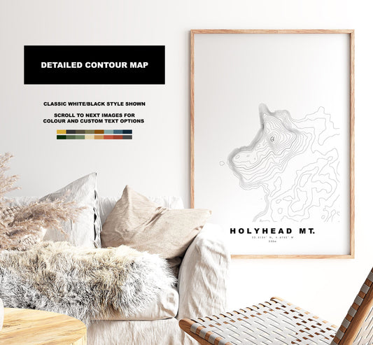 Holyhead Mountain Print - Contour Map - Anglesey - Wales - Topographic Map - Print - Wall Art - Mynydd Twr - Contour Map - Topography