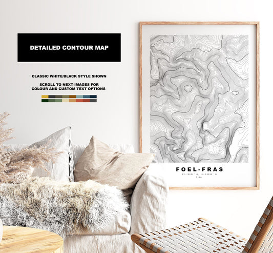 Foel Grach Print - Contour Map - Foel Grach Poster - Wales - Topographic Map - Print - Poster - Wall Art - Welsh 3000s - Carneddau Range