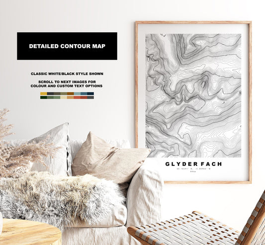 Custom Welsh Mountain Print - Any Location - Contour Print - Wales - Welsh Mountains - Map Poster - Contour Map - Topography - Topography