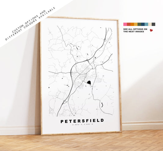 Petersfield Map Print - Minimalist City Map Poster - Map Art - UK - Petersfield Print - Petersfield Poster - Different Colours Available