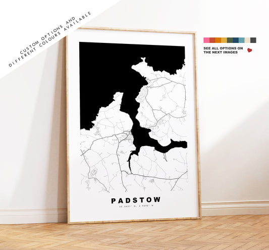 Padstow Map Print - Minimalist City Map Poster - Map Wall Art - UK - Padstow Print - Padstow Poster - Different Colours Available