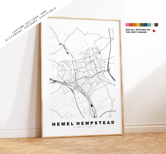 Hemel Hempstead Map Print - Minimalist City Map Poster - Map Wall Art - UK - Hemel Hempstead Print - Poster - Different Colours Available