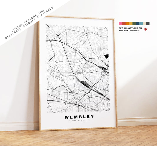 Wembley Map Print - Minimalist City Map Poster - Map Art - London, UK - Wembley Print - Wembley Poster - Different Colours Available