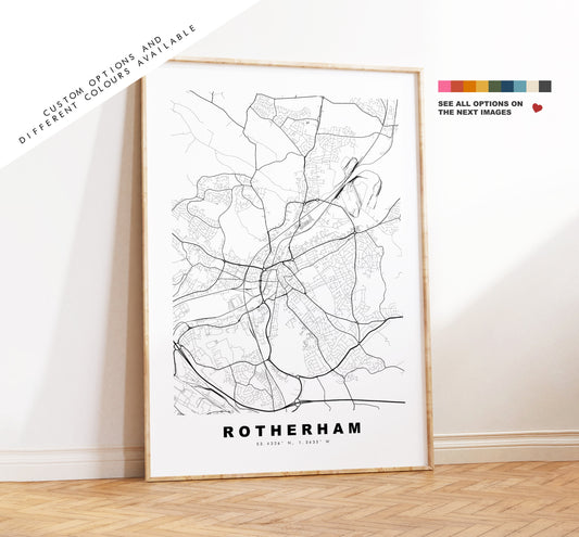 Rotherham Map Print - Minimalist City Map Poster - Map Art - UK - Rotherham Print - Rotherham Poster - Different Colours Available