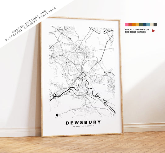 Dewsbury Map Print - Minimalist City Map Poster - Map Art - UK - Dewsbury Print - Dewsbury Poster - Different Colours Available