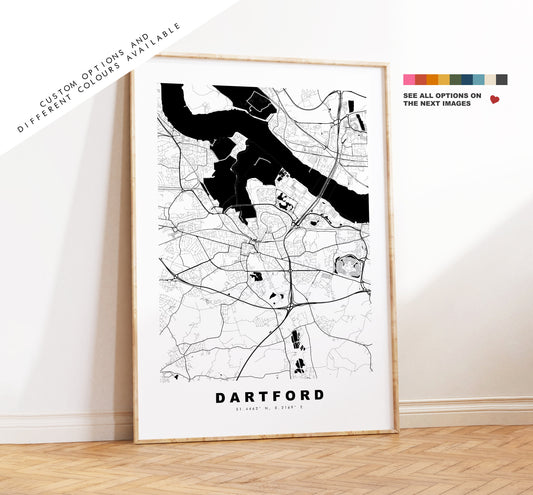 Dartford Map Print - Minimalist City Map Poster - Map Wall Art - UK - Dartford Print - Dartford Poster - Different Colours Available