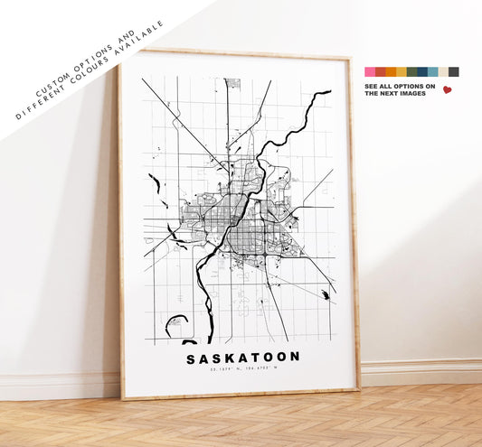 Saskatoon Map Print - City Map Poster - Map Art - Map Wall Art - Canada City Maps - Saskatoon Print - Saskatoon Poster - Minimalist City Map