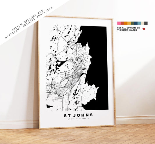 St Johns Map Print - City Map Poster - Map Art - Map Wall Art - Canada City Maps - St Johns Print - St Johns Poster - Minimalist City Map
