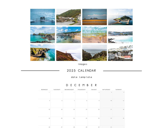 Cornwall 2025 Calendar - A3 or A4 Wall Calendar - Cornwall 2025 Wall Calendar - St Ives - Kynance - Mevagissy - Godrevy - Bude - Surf