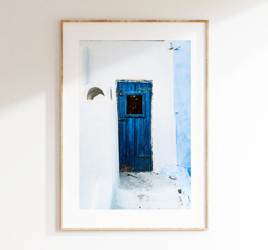 Greek Blue Door - Photography Print - Greece - Print - Poster - Santorini Photography - Greece Wall Art - Blue Wall Art - Blue Architecture
