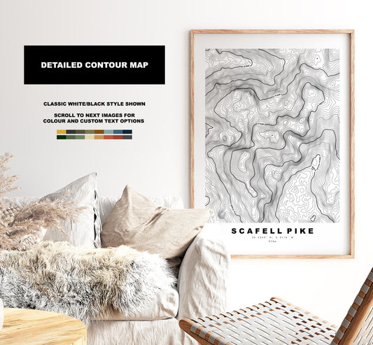 Scafell Pike Print - Contour Map - Scafell Pike Poster - Lake District - Topographic Map - Print - Wall Art - Scafell Pike Map - Topography