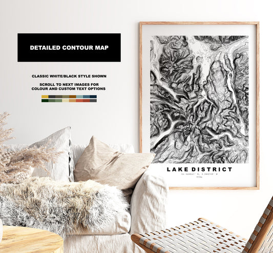 Lake District Print - Contour Map - Lake District Map - Topographic Map - Print - Poster - Wall Art - Lake District Gift - Topography