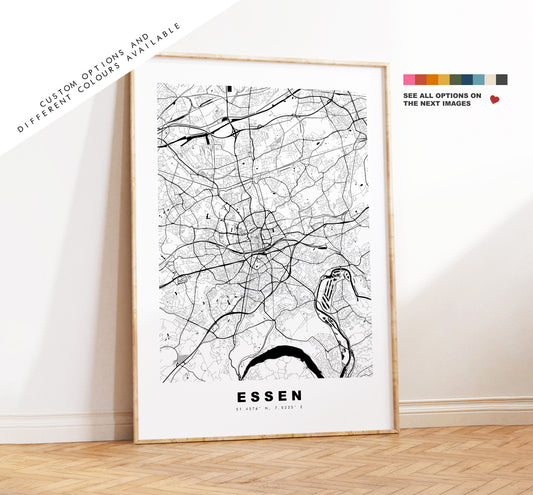Essen Map Print - City Map Poster - Map Wall Art - Germany City Maps - Essen Print - Essen Poster - Minimalist City Map - Germany
