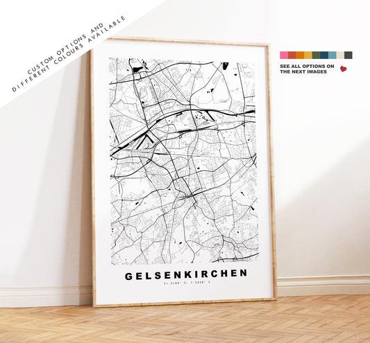 Gelsenkirchen Map Print - City Map Poster - Map Wall Art - Germany City Maps - Gelsenkirchen Print - Poster - Minimalist City Map - Germany