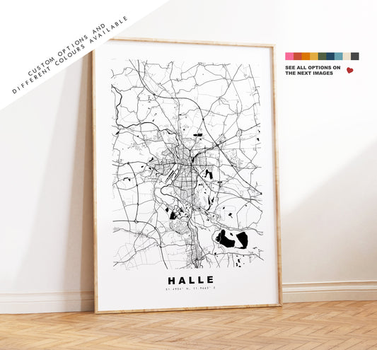 Halle Map Print - City Map Poster - Map Wall Art - Germany City Maps - Halle Print - Halle Poster - Minimalist City Map - Germany