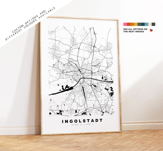 Ingolstadt Map Print - City Map Poster - Map Wall Art - Germany City Maps - Ingolstadt Print - Ingolstadt Poster - Minimalist City Map