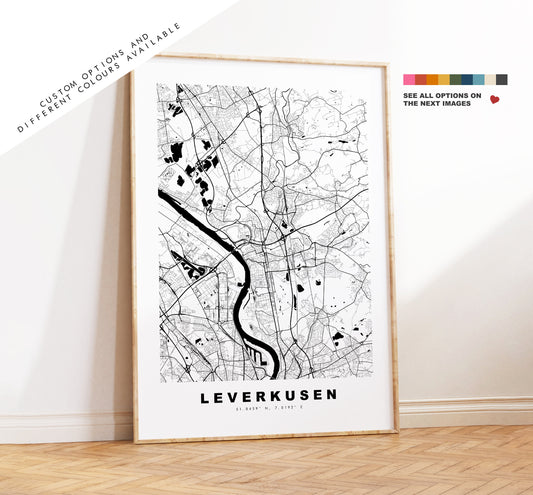 Leverkusen Map Print - City Map Poster - Map Wall Art - Germany City Maps - Leverkusen Print - Leverkusen Poster - Minimalist City Map