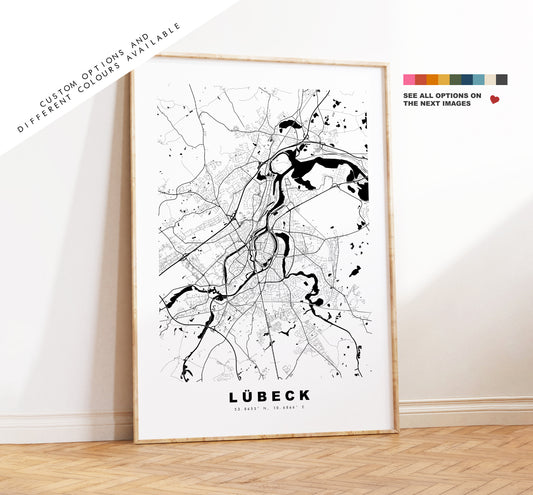 Lubeck Map Print - City Map Poster - Map Wall Art - Germany City Maps - Lübeck Print - Lübeck Poster - Minimalist City Map - Germany