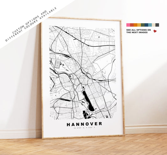Hannover Map Print - City Map Poster - Map Wall Art - Germany City Maps - Hannover Print - Hannover Poster - Minimalist City Map - Germany