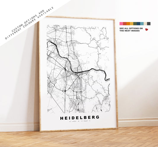 Heidelberg Map Print - City Map Poster - Map Wall Art - Germany City Maps - Heidelberg Print - Heidelberg Poster - Minimalist City Map