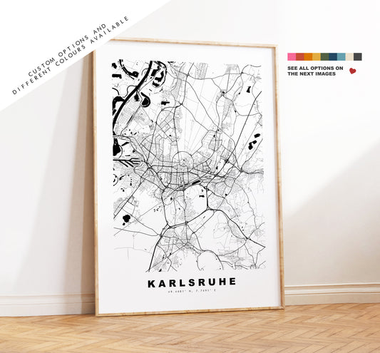 Karlsruhe Map Print - City Map Poster - Map Wall Art - Germany City Maps - Karlsruhe Print - Karlsruhe Poster - Minimalist City Map