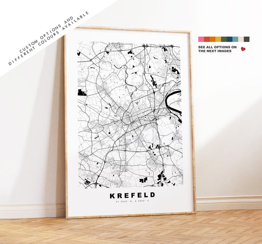 Krefeld Map Print - City Map Poster - Map Wall Art - Germany City Maps - Krefeld Print - Krefeld Poster - Minimalist City Map - Germany