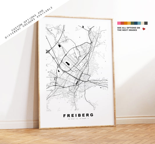 Freiberg Map Print - City Map Poster - Map Wall Art - Germany City Maps - Freiberg Print - Freiberg Poster - Minimalist City Map - Germany