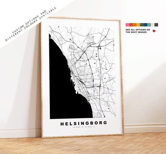 Helsingborg Map Print - City Map Poster - Map Wall Art - Sweden City Maps - Helsingborg Print - Helsingborg Poster - Minimalist City Map