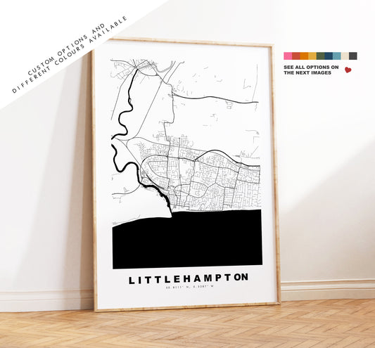 Littlehampton Map Print - Minimalist City Map Poster - Map Art - UK - Littlehampton - Littlehampton Poster - Different Colours Available
