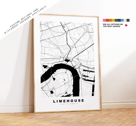 Limehouse Map Print - Minimalist City Map Poster - Map Wall Art - UK - Limehouse Print - Limehouse Poster - Different Colours Available