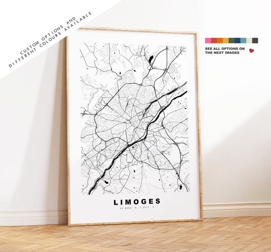 Limoges Map Print - City Map Poster - Map Wall Art - France City Maps - Limoges Print - Limoges Poster - Minimalist City Map - France
