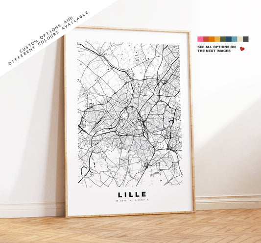 Lille Map Print - City Map Poster - Map Wall Art - France City Maps - Lille Print - Lille Poster - Minimalist City Map - France