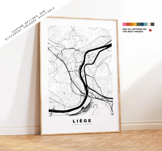 Liege Map Print - City Map Poster - Map Art - Map Wall Art - Belgium City Maps - Liège Print - Liège Poster - Minimalist City Map