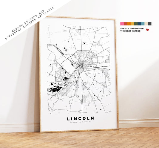 Lincoln Map Print - Minimalist City Map Poster - Map Wall Art - UK - Lincoln Print - Lincoln Poster - Different Colours Available