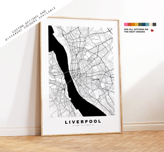 Liverpool Map Print - Minimalist City Map Poster - Map Art - UK - Liverpool Print - Liverpool Poster - Different Colours Available