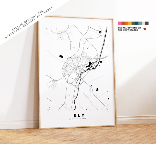 Ely Map Print - Minimalist City Map Poster - Map Wall Art - UK - Ely Print - Ely Poster - Different Colours Available