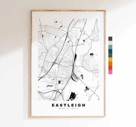 Eastleigh Map Print - Minimalist City Map Poster - Map Art - UK - Eastleigh Print - Eastleigh Poster - Different Colours Available
