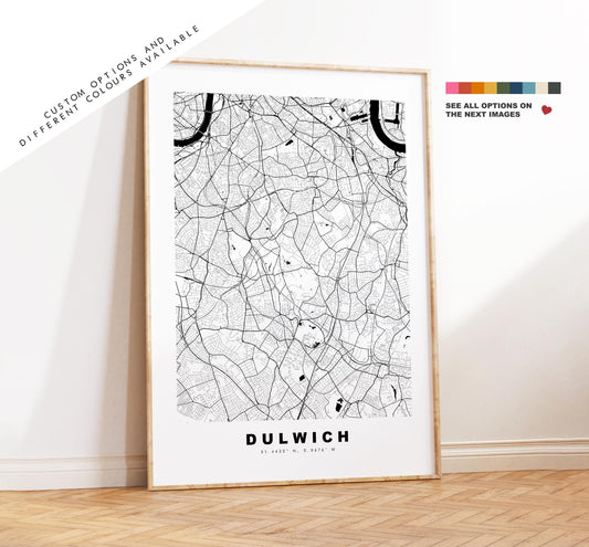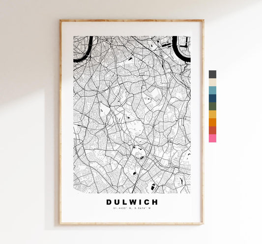 Dulwich Map Print - Minimalist City Map Poster - Map Art - UK - Dulwich Print - Dulwich, London - Different Colours Available