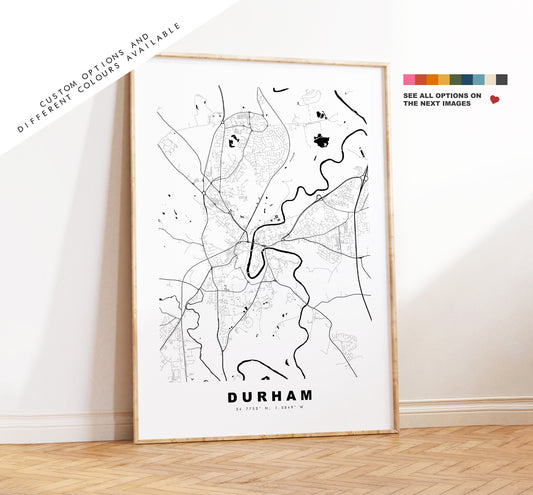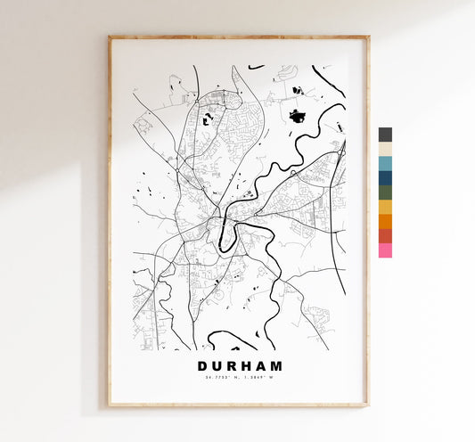 Durham Map Print - Minimalist City Map Poster - Map Wall Art - UK - Durham Print - Durham Poster - Different Colours Available