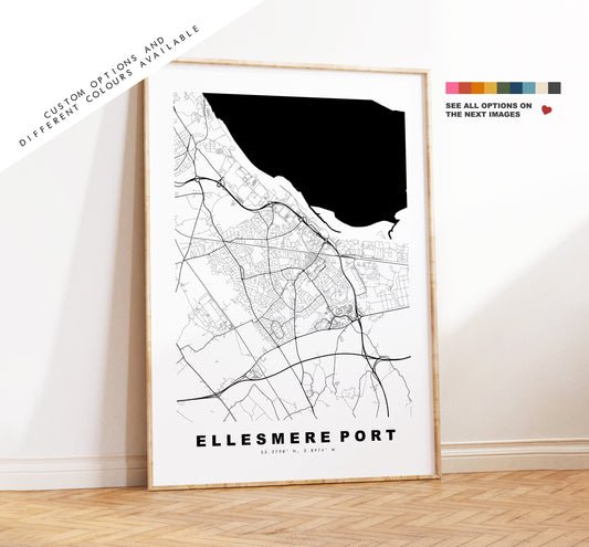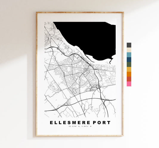 Ellesmere Port Map Print - Minimalist City Map Poster - Map Art - UK - Ellesmere Port Print - Ellesmere Poster - Different Colours Available
