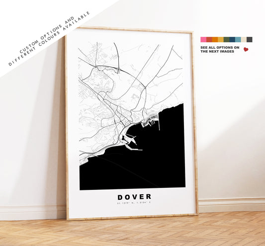 Dover Map Print - Minimalist City Map Poster - Map Wall Art - UK - Dover Print - Dover Poster - Different Colours Available