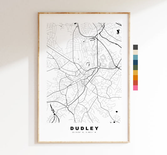 Dudley Map Print - Minimalist City Map Poster - Map Wall Art - UK - Dudley Print - Dudley Poster - Different Colours Available