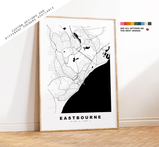 Eastbourne Map Print - Minimalist City Map Poster - Map Wall Art - UK - Eastbourne Print - Eastbourne Poster - Different Colours Available