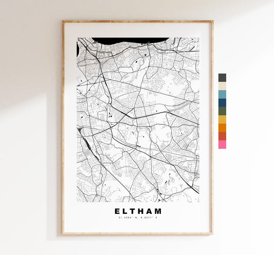 Eltham Map Print - Minimalist City Map Poster - Map Art - UK - Eltham Print - Eltham, London - Different Colours Available